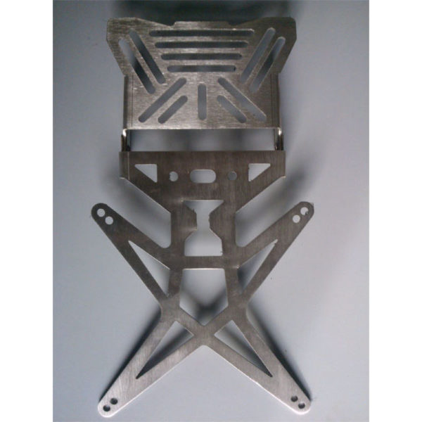 PORTA TARGA INCLINABILE UNIVERSALE MODELLO “SPEED-RACING” CON PREDISPOSIZIONE LUCE TARGA (INTERASSE FORI 45 MM DIAMETRO 7) REALIZZATO IN ACCIAIO INOX, SI PUO MONTARE SU TUTTI I MODELLI DI MOTO. COMPOSTO DA UN PORTA TARGA PIù UNA STAFFA UNIVERSALE FISSATI TRA LORO CON DUE VITI M4 NON FORNITE. (NO PREDISPOSIZIONE PORTA FRECCE)